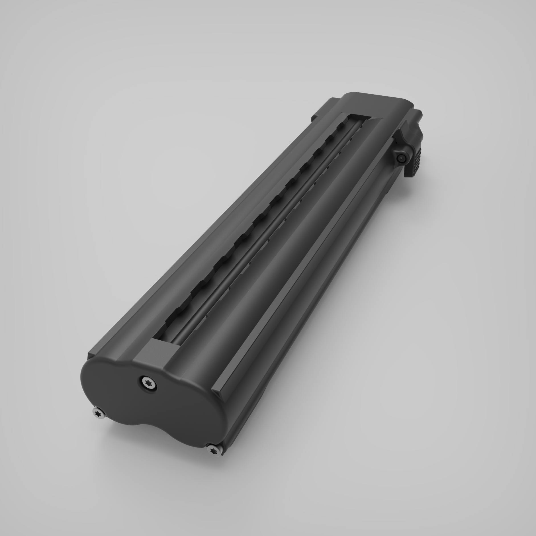 Our rail-mounted battery system provides secure mounting with rapid swap capability, designed for professional operation where reliability and speed matter.